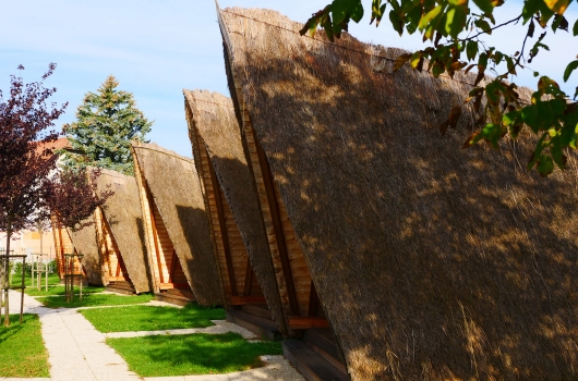 Ob zemljankah in hiškah se nahaja še pokrit skupni prostor, otroška igrala ter urejen sanitarni blok s toaletami, tuši in čajno kuhinjo.