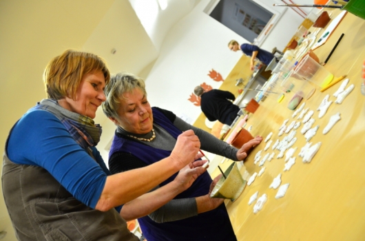 Že dolgo ni bilo tako pestro in veselo v lončarski delavnici Rokodelskega centra v Veržeju. Lončarki Urši se je samo smejalo nad ustvarjalnostjo mladih in starejših na zadnji letošnji božični delavnici. Novi izdelki iz gline, ki so jih udeleženci ustvarjali, so dobivali barvne odtenke in glazurni premaz, ki bo izdelkom po prestani peki v lončarski peči dal neuničljiv sijaj in trdnost.